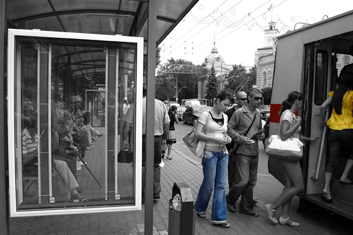 The images were arranged in two parallel lines: one strip features photos taken in Tiraspol, and the other in Chisinau.
