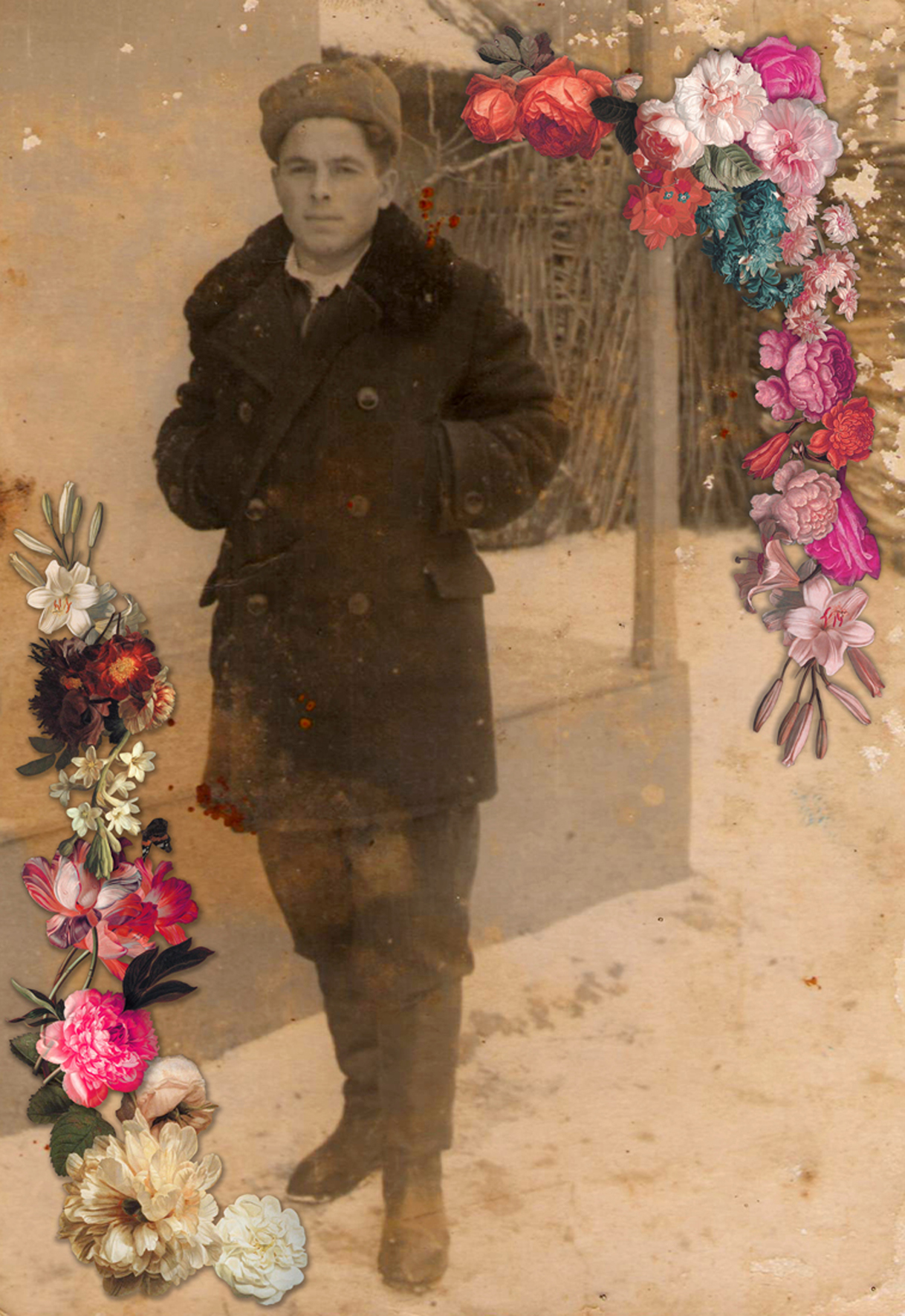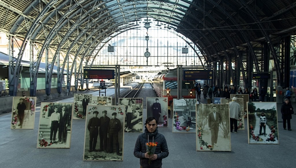 The installation utilized mobile stands (160 x 110 cm) featuring portraits of a disappearing generation.