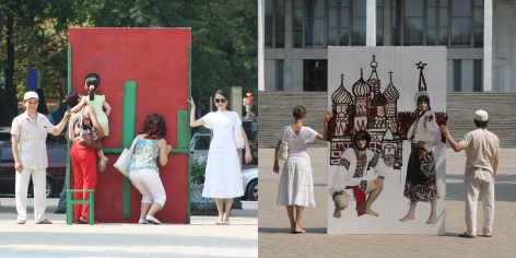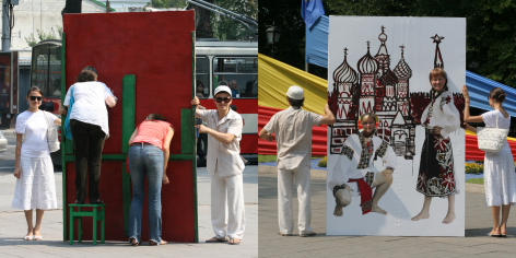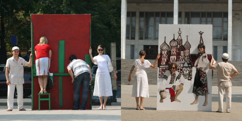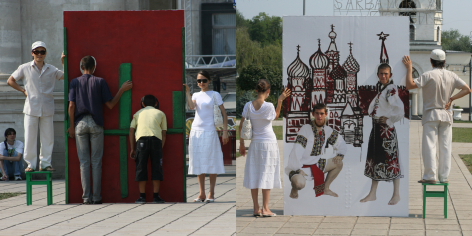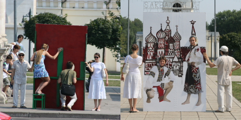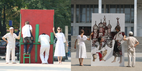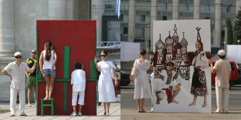 The interactive project “Moldavians Everywhere” is a large-scale performative intervention within the public sphere, where the monumental architecture of government buildings serves as a backdrop for the deconstruction of the “facade” of contemporary Moldovan society.